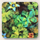 Des fleurs, un papillon et des feuilles brillent dans ce tableau coloré qui a été modifié numériquement.