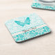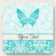 Dessous-de-verre Papillon turquoise ; Motif Damas