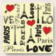 Paris design de texte pour la Saint-Valentin aux formes coeur rouge, Tour Eiffel et lampes de rue décoration arrière - plan jaune