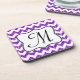 Parties scintillant violet moderne Chevron Zig Zag Tissu de bande Imprimer Motif Monogramme Dessous de verre de boisson initial Personnalisé