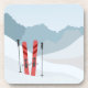 Paysage hivernal Abstrait avec vue panoramique sur la montagne, équipement de ski rouge, sentier et ciel bleu
