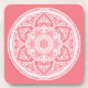 Ce mandala blanc est assis sur un arrière - plan rose pêche. Les couleurs sont fleuries et claires. Partie de la collection Bardh Mandala.