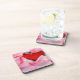 Belle illustration romantique avec un coeur de verre rouge sur un lit de pétales de roses blanches.