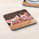 Dessous de verre de liège avec une adorable photo. 2 porcelets roses pendent ensemble.