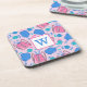 Dessous-de-verre Pickleball Paddle et Balls Pink Preppy initial