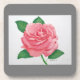 Customizable Hard plastic Coasters with a cork back with a pink rose design.