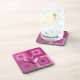 A pretty pink background of squares with a pink puffy heart that accents the center of these coasters.