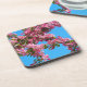 Pretty summery coasters with pink tree blossom and blue sky.