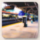 Appelle tous les amoureux du train ! La photographie originale sur cet ensemble de six Dessous de verre est équipée d'un moteur bleu élégant qui tire un train vers la gare sur la voie 2. Le toit en tuiles rouges de la plate-forme opposée et un palmier sont visibles à la lumière tropicale lumineuse.