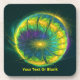 Image fractale sphérique, segmentée (ou articulée) en vert, bleu et jaune sur un arrière - plan vert foncé. Customisez en ajoutant votre propre texte.