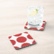 De jolis Dessous de verre Pois branchés. Ce design présente des pois grand cercle surdimensionnés en rouge et blanc. Un texte peut être ajouté à cette conception pour lui donner une touche personnelle.