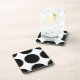 De jolis Dessous de verre Pois branchés. Ce design présente des pois de grand cercle surdimensionnés en noir et blanc. Un texte peut être ajouté à cette conception pour lui donner une touche personnelle.