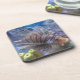 Le charmant poisson-lionfish de ce Dessous de verre nage dans un aquarium coloré d'eau salée. C'est une photo originale de ZoeSPEAK montrant le motif de bandes épaisses et fines et de nageoires fantaisistes sur ce poisson à l'allure inhabituelle. C'est une photo colorée avec le bleu tropical, jaune et rose de l'aquarium et le nez rose saumon du poisson.