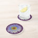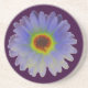 Ce joli dessous de verre en grès présente une photo d'une fleur de marigold qui a été manipulée pour créer une belle fleur avec un mélange de couleurs de l'arc-en-ciel. La fleur est sur un arrière - plan violet foncé dramatique.