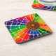 Ces dessous de verre ont une toile arc-en-ciel sur eux.