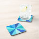 Cette hanche, rétro ensemble de dessous de verre de liège-et-plastique d'art de bruit 60s-inspired a les rayons/rayons de soleil bleus psychédéliques tirant dans un motif géométrique. Ce génial, minimaliste, conception des dessous de verre ultra-mod a douze rayons dans les nuances variables du bleu lumineux, du néon à la lumière à l'obscurité. Il est super, bébé.
