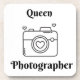 Reine photographe avec caméra sur un ensemble de capuchons de boisson.