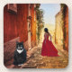 Coaster featuring a painting of a lady in red in a romantic Italian village with a big tuxedo cat :-) Purrfect for a crazy cat lady who loves Italy.