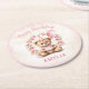 Dessous-de-verre Rond En Papier 1er Anniversaire Ours Roses Roses Roses rondes Des