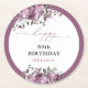 Dessous-de-verre Rond En Papier 80e anniversaire Elégant Roses violets