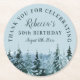 Pins d'aquarelle de Noël bleu et vert Cinquantième anniversaire Dessous de verre de papier de fête - Ajoutez votre nom, votre anniversaire célébré et la date de la fête d'anniversaire. Un élégant design de fête d'anniversaire à thème hivernal qui associe une police décorative audacieuse avec de la calligraphie manuscrite et est couronné d'une scène aquarelle libre de pins avec de la neige.