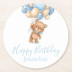 Dessous-de-verre Rond En Papier Ballons Ours En Teddy Joyeux Bleu Boy Anniversaire