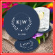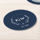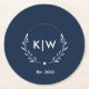 Dessous-de-verre Rond En Papier Bleu et blanc | Monogramme des initiales modernes