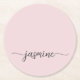 Dessous-de-verre Rond En Papier Blush Pink Monogramme Nom Écriture Chic Signature