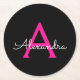 Dessous-de-verre Rond En Papier Chaud rose noir Script Girl Nom du monogramme
