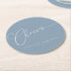 Dessous-de-verre Rond En Papier Cheers Minimal Dusty Blue Script personnalisé mari