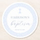 Dessous-de-verre Rond En Papier Clé grecque Baptême Bleu Blanc