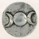 Ensemble de 6 dessous de verre jetables ronds à pâte à papier avec l'image d'un médaillon Triple Goddess en étain.