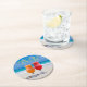 Boire du papier sous des chapiteaux avec du texte "cheers" et des cocktails tropicaux sur une image de plage tropicale. Boissons de fruits congelés en verrerie avec pailles s'assoient dans une tranche de paradis avec soleil, eau turquoise et ciel bleu. Courbes de libellé sur le dessus et cette image convient le mieux sur les dessous de verre ronds. Supprimez le libellé et il fonctionne sur à peu près tous. Les dessous de verre s'impriment au fur et à mesure qu'ils regardent dans l'aperçu.