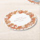 Sous-verre rond personnalisé pour douche de mariée bohème orange avec fleurs et cadre