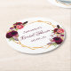 Dessous-de-verre Rond En Papier Douche nuptiale fleurs bordeaux or géométrique