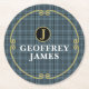 Dessous-de-verre Rond En Papier Élégant damier monogrammé noir et or