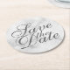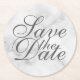 Dessous-de-verre Rond En Papier Élégant mariage Marbre blanc Enregistrer la date