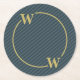 Dessous-de-verre Rond En Papier Élégant Monogramme à Rayures noires et Or