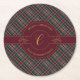 Dessous-de-verre Rond En Papier Élégant Monogramme Or Plaid Noël