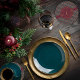 Elégant, mais rustique, motif plaid en rouge canneberge profonde, vert turquoise foncé, bleu marine foncé avec fils faux or. Fond de sainte et de baies en or avec deux cercles centraux pour encadrer votre initiale monogramme. Ajoutez simplement votre nom initial, votre adresse de voeux et votre nom de famille ou d'entreprise. Idéal pour fêter les vacances et les occasions hivernales.