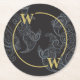Dessous-de-verre Rond En Papier Élégant Monogramme Paisley Noir Or