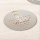 Ajoutez une touche d'élégance intemporelle à votre tablescape de douche nuptiale avec cette faveur ronde personnalisée avec une robe nuptiale chic aquarelle, un arrière - plan taupe doux et des lettres classiques. Parfait comme élément décoratif pour les boissons, ou de l'incorporer dans un prix de jeu ou un cadeau de bienvenue. Coordonnée avec notre collection de Fêtes des mariées d'automne Elegant. Customisez facilement avec votre nom et la date de l'événement.