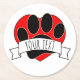 Dessous-de-verre Rond En Papier Empreinte de patte de chien Bannière de coeur roug