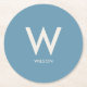 Dessous-de-verre Rond En Papier Fête Personnalisée Monogramme Bleu Clair