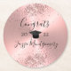 Sur un lin métallique poli rose sont des confettis de parties scintillant rose où au milieu vous pouvez personnaliser l'année et le nom. Thème parties scintillant rose glam fille