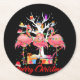 Dessous-de-verre Rond En Papier Flamant rose Lumières Santa Hat Sweat Tree Noël
