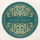 Dessous-de-verre Rond En Papier Gold Teal Royal Medieval Sword Wedding