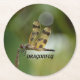 Dessous-de-verre Rond En Papier Golden Dragonfly Personnalisable Vert