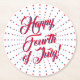 Dessous-de-verre Rond En Papier Joyeux 4 Juillet script rouge blanc & bleu étoiles