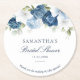 Dessous-de-verre Rond En Papier Lavage à l'aquarelle bleue poussiéreuse Fleurs Scr